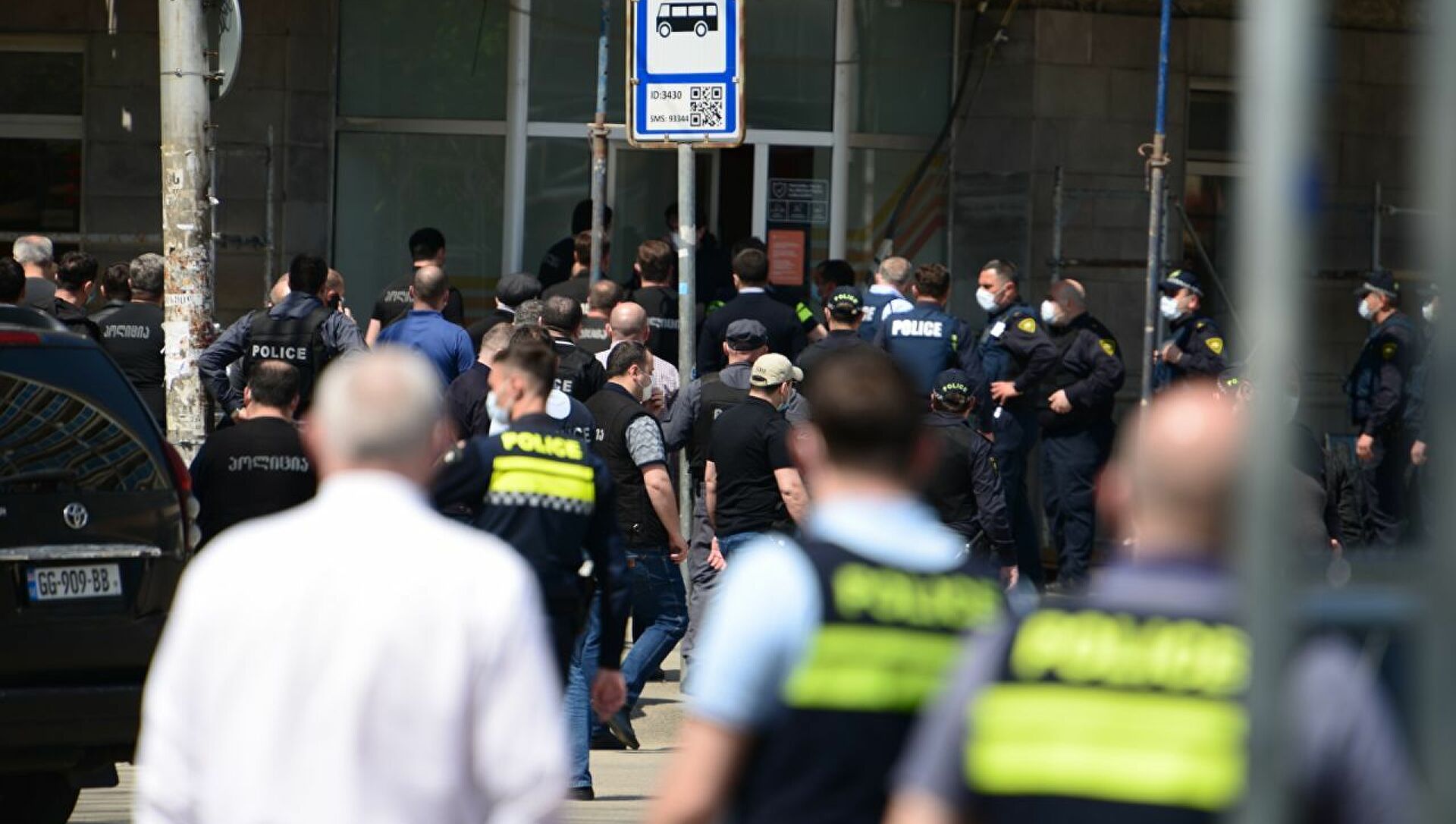 Сотрудников и посетителей было порядка 15 человек. Один из очевидцев рассказал, что у мужчины в руках была граната. Он все еще находится в банке. С ним ведут переговоры. К филиалу Банка Грузии прибыл спецназ.