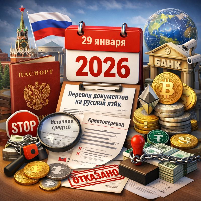 С 29 января 2026 года международные переводы в РФ допускаются к зачислению только при наличии документов, переведённых на русский язык, при этом средства, ранее находившиеся в криптовалюте, рассматриваются с приоритетным уровнем проверки. Апостиль больше не является достаточным условием, а прозрачность и читаемость документов становятся ключевым элементом финансового допуска.